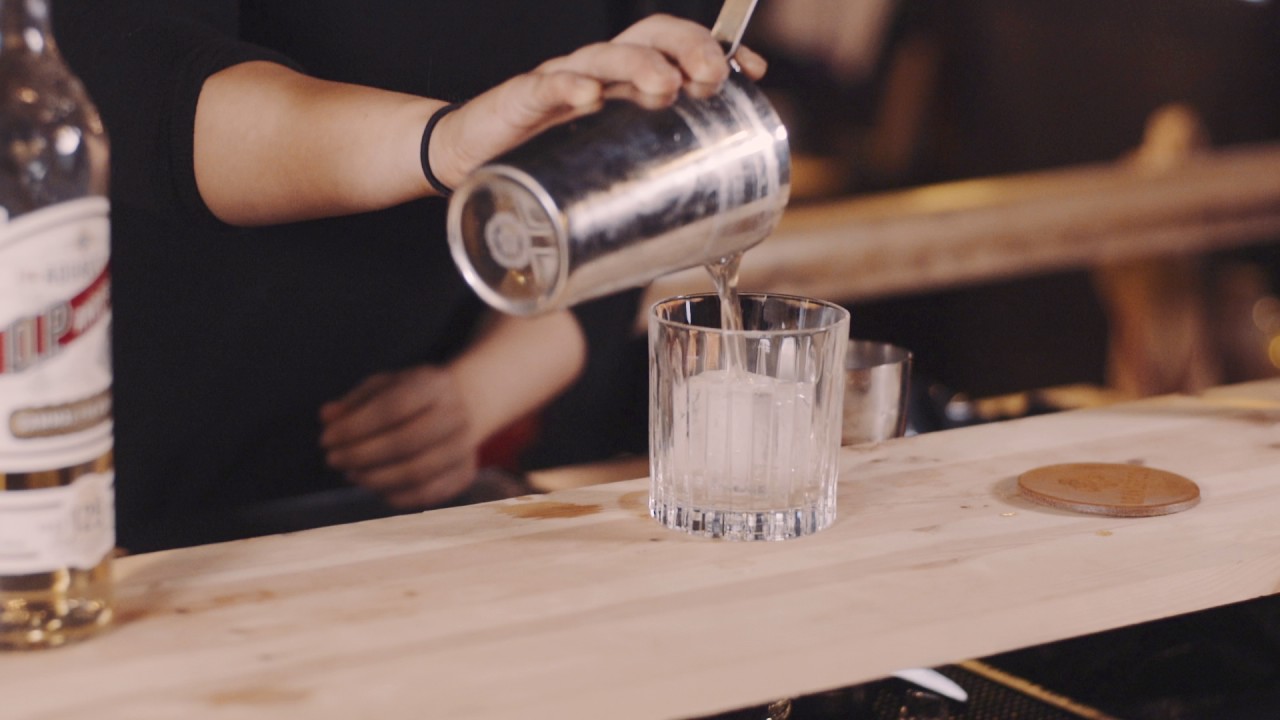 Julia Kokki från O.P. Army gör en drink på akvavit som hon valt att kalla Pick me up Santa.