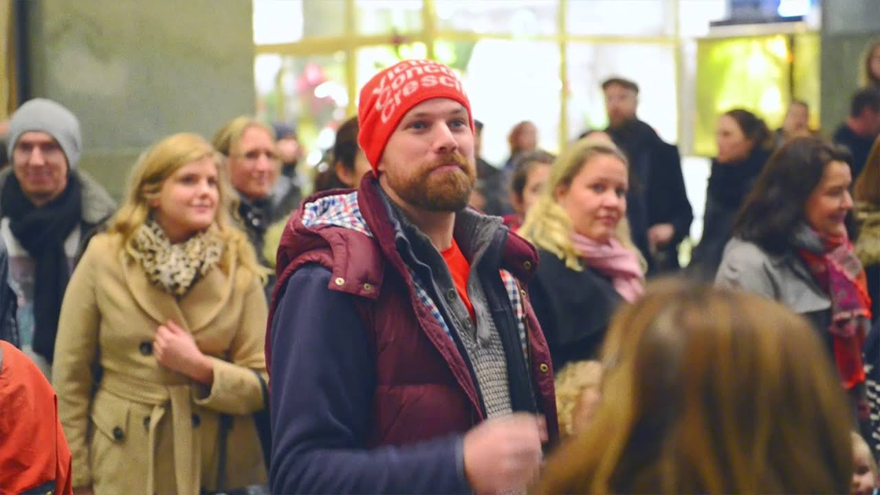 Sjung med! Den traditionsenliga julkören i flashmobversion från sju olika platser i Stockholm.